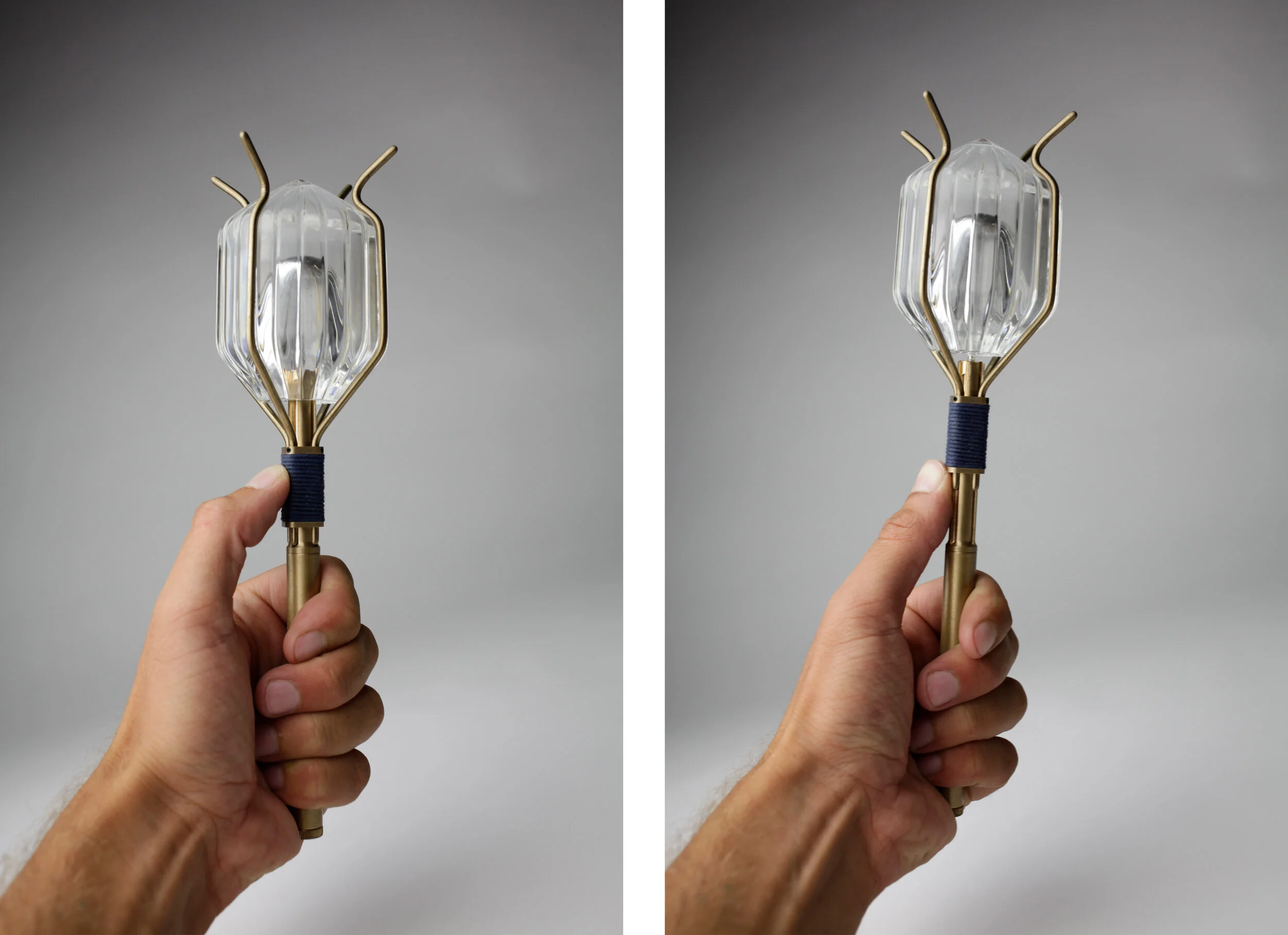 Internal light movement inside the crystal creates the opportunity to play with light patterns. Realized by the cuts and shape of the crystal.